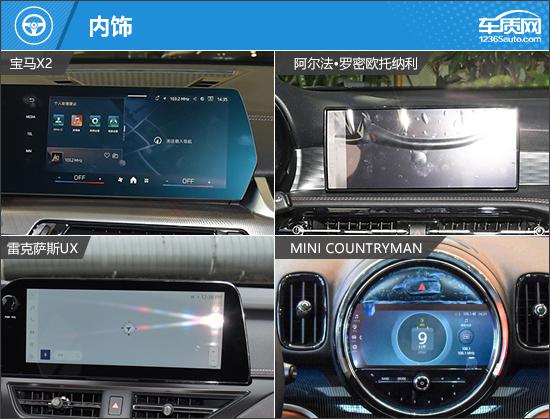 在内饰方面,宝马 X2 选择更具科技感的双屏幕设计;阿尔法 · 罗密欧托纳利是一种简单的意大利风格;雷克萨斯 UX 然后继承品牌一贯的内敛与奢华;MINI COUNTRYMAN 设计最受年轻人喜爱,圆润复古又不失时尚感。在现代感方面,除了 MINI COUNTRYMAN 另外,三款车型的中控台显示屏采用悬挂式设计。