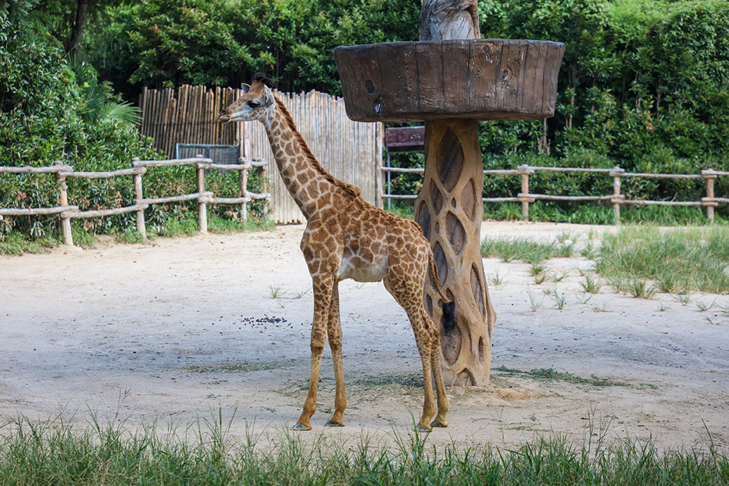 长颈鹿宝宝的“石头”已有6个月大,身高2.5米。所有这些图片都是 上海野生动物园 图