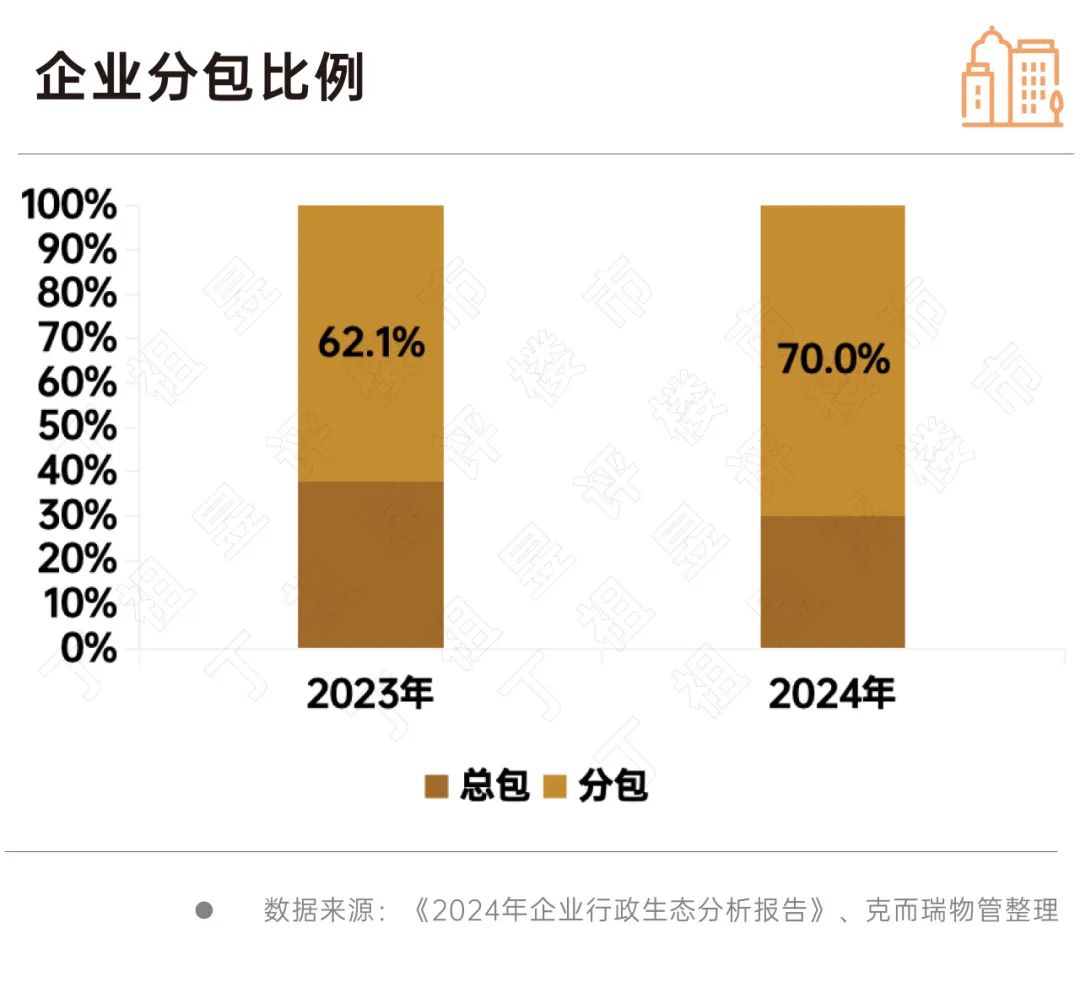 企业分包比例持续上升,2024年企业分包比例上升至70.0%,比2023年增长7.9%。