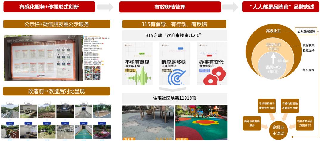 第二,有效的舆论管理。比如2024年“3.15”期间,保利物业再次开展了“欢迎来到2.0”活动。一个多月后,全国住宅社区共恢复了11318项,第一阶段恢复承诺完成率达到94%,真正做到了倡导、行动和反馈。