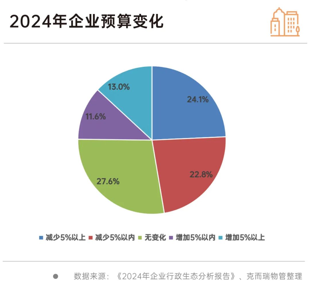 根据克而瑞物业管理的《2024年企业行政生态分析报告》,近50%的企业预算下降了10%-30%,账期从3个月延长到10个月。
