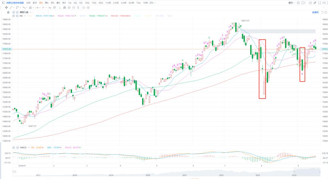 今年8月初和9月初,美股经历了两次大幅下跌,上半年暴涨背后积累的泡沫焦虑爆发。这背后,除了所谓的套利交易,美国经济出现了不良信号。让软着陆或硬着陆的讨论再次回归。,对宏观环境的焦虑,成为这两次暴跌最重要的负面因素。