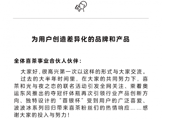今日上午,喜茶向业务伙伴发布了一封内部信,主题为“为用户创造差异化品牌和产品”。
