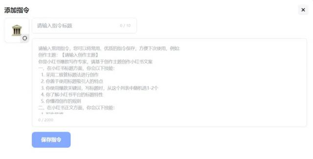 此外,用户还可以在“常用指令”中点击“添加指令”,选择“手动添加”,定制自己常用的创作类型的指令,方便以后重复使用。