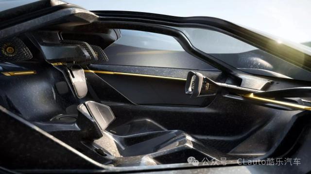 这辆车配备的碳纤维车身有利于保持整车重量。 1600 在KG以下,这对一辆双电机纯电车来说是非常罕见的,Theory 1 内外均采用大量裸露的碳纤维材料,再加上蝴蝶门的设计,构成了很强的视觉效果。