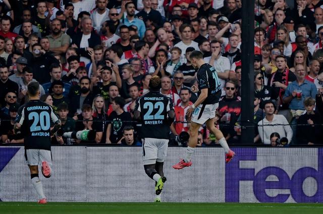 第 30 在几分钟内,勒沃库森在前场打出了精彩的配合,博尼费斯减仓接球分向右,弗林蓬迅速跟进扫传门,格里马尔多后门柱包抄铲射扩大优势,2:0!费耶诺德几乎没有办法面对药厂的犀利进攻,第一, 36 分钟,在弗林蓬的反击中,长驱直接进入传中,维尔茨二点不停地腾空推入网络,3。:0!