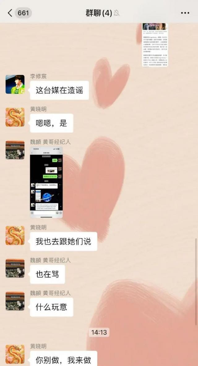 叶珂直接拍了群聊截图,并写道“有点无缘无故”。这种行为真的是无缘无故的。不知道她是在谴责台湾媒体的谣言,还是对黄晓明迟迟不正式宣布的态度不满意。
