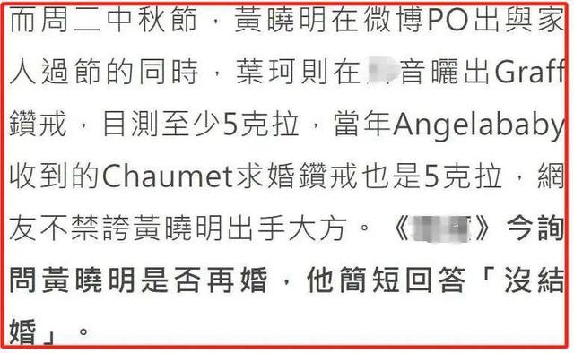 14 点 二十一,叶珂在一个 4 在人群中甩出一张截图,内容是台媒报道称黄晓明亲自承认“没有结婚”。