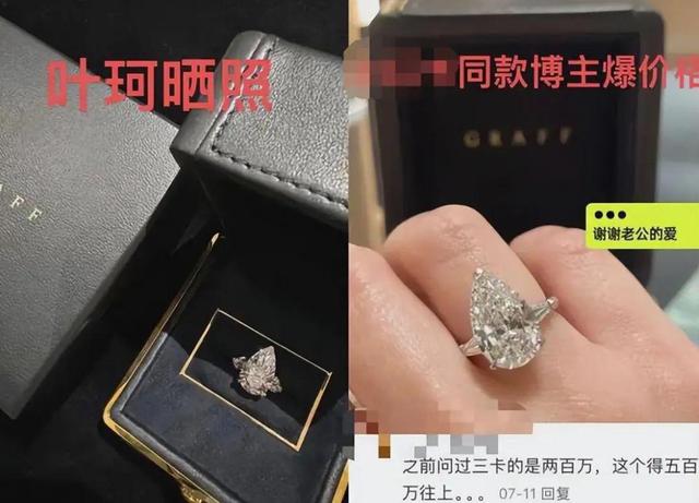 此外,叶珂本人在中秋节当天晒出了一枚超大的钻戒,被曝出克重是叶珂的生日,知识渊博的网友称价格为500枚。 W 以上。
