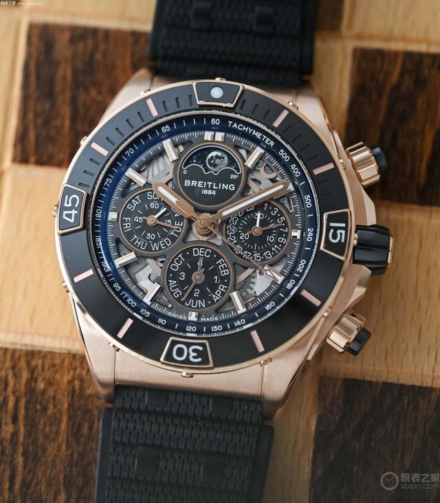 当百年灵推出万年历记时,我并不感到惊讶。因为记时是百年灵的特长。现代计时表的两个记时按钮是百年灵发明的。而且在 2009 百年灵拥有优秀的综合素质自产。 B01 计时机芯自动上弦,这次万年历计时 B19 运动,就是在那里 B01 万年历模块安装在上面。