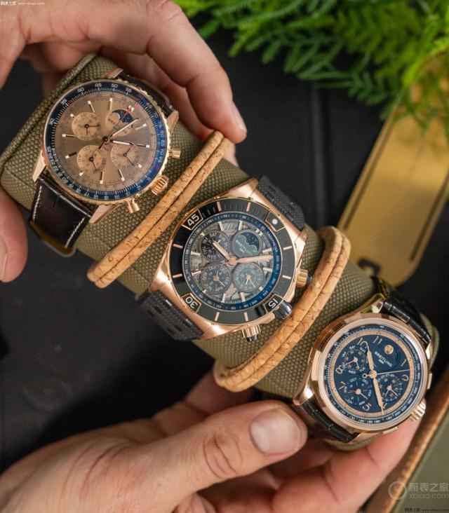 从左到右,分别是,璞雅万年历记时,航空记时万年历计时,超级机械记时万年历计时。