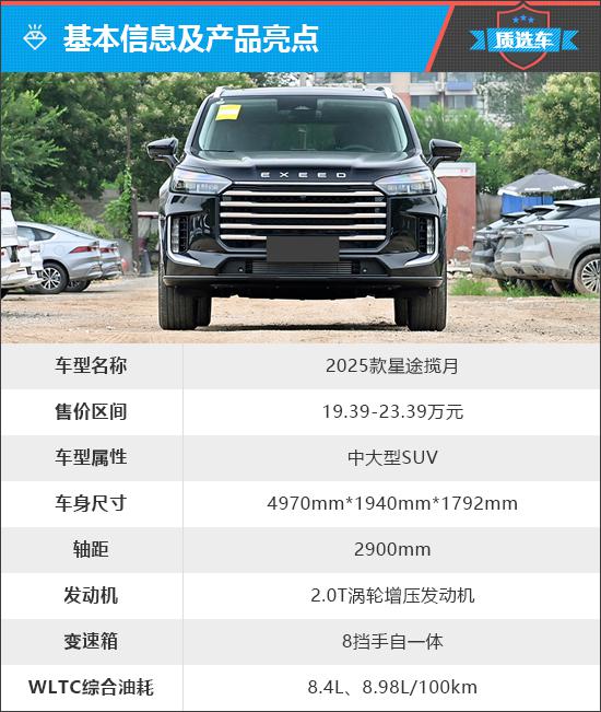 星途作为奇瑞的高端品牌,虽然在网络上的曝光度并不高,但是它的用户口碑并不差。星途揽月是一款中大型 SUV,以大空间和高配置,感动了不少重视性价比和产品实力的客户。8 月 5 日,2025 款星途揽月正式上市,新车在原有豪华配置的基础上,进行了外观、内饰、汽车、豪华等方面的升级。那么,2025 款星途揽月能否帮助品牌向上突破,成功站稳高端市场?本期《质选车》将为您详细分析。