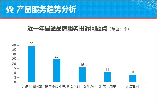 从服务投诉的角度来看,“系统更新问题”和“销售承诺不兑现”成为车主对星途汽车品牌投诉较多的服务问题。通过进一步分析,我们可以看到这两种服务问题来自三种模式:星途凌云、星途追风和星途瑶光。