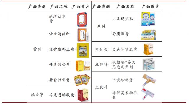 其中,作为独家商品,核心产品通络祛痛膏被选为国家基本药品目录和国家医疗保险目录,年销售额超过 10 十亿元;“两只老虎”系列四大商品在同类产品中的市场份额均为第一,2022 年壮骨麝香止痛膏、伤湿止痛膏、关节止痛膏、麝香壮骨膏的市场份额分别为 92.59%、48.36%、39.28%、30.68%,2023 年度总销售额超过 10 亿贴,稳居领先地位。