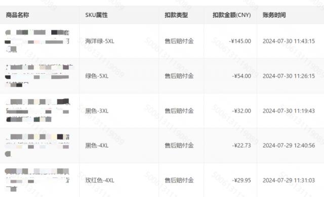 魏纯给广东商家 21 记者展示了自己店铺的后台记录,售后赔偿的扣款通知一个接一个,但是没有照片、报告等事实证据,很难追查哪个客户,哪个发货单出了问题。