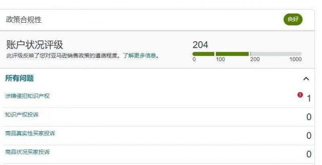 图为亚马逊后台帐户健康分数(图 / 受访者提供)