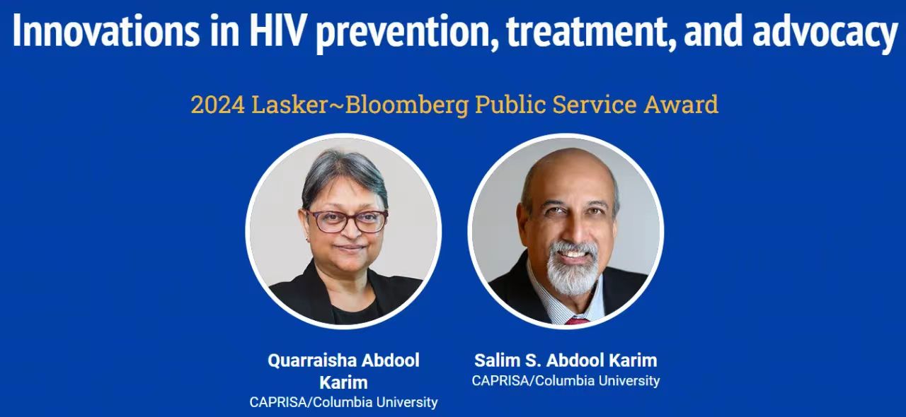 南非艾滋病研究中心/美国哥伦比亚大学2024年拉斯克奖公共服务奖(CAPRISA and Columbia University)Quarraisha SalimSalimSalimSalimSalim和南非艾滋病研究中心/哥伦比亚大学.AbdoolKarim,由于他们“阐明了HIV异性传播的主要驱动因素;辅助治疗艾滋病毒;在公共卫生政策和倡导方面的领导。”