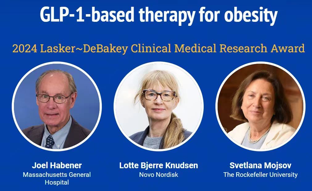 美国麻省总医院2024年拉斯克奖基础医学研究奖授予(Massachusetts General Hospital)的Joel Habener、诺和诺德跨国制药公司(NVO.US)Lotte Bjerre 美国洛克菲勒大学Knudsen和(The Rockefeller University)Svetlana Mojsov,为了表彰他们“发现和开发基于GLP-1的药物,彻底改变了肥胖症的治疗”。