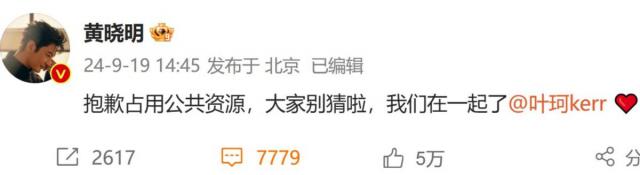 娱乐圈再次曝光大新闻。首先,黄晓明和叶珂结婚了,然后舆论开始发酵。在网友找到黄晓明爱情趋势的真正证据之前,黄晓明已经站出来回复“对不起占用公共资源,别猜了,我们在一起了”。