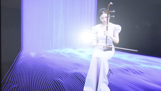 虚拟人“王楚婷”在《未来弦诗》的表演现场演奏虚拟“二胡”。王楚婷提供图片