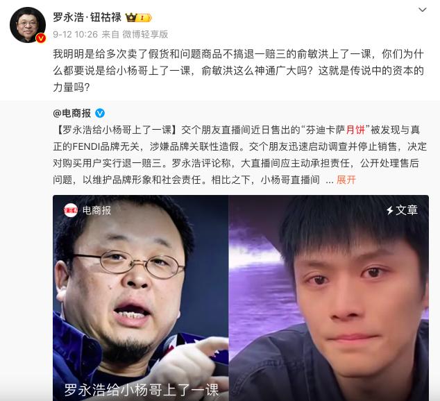 而且罗永浩和小杨哥这样的对比,正好符合辛巴的那套说辞。