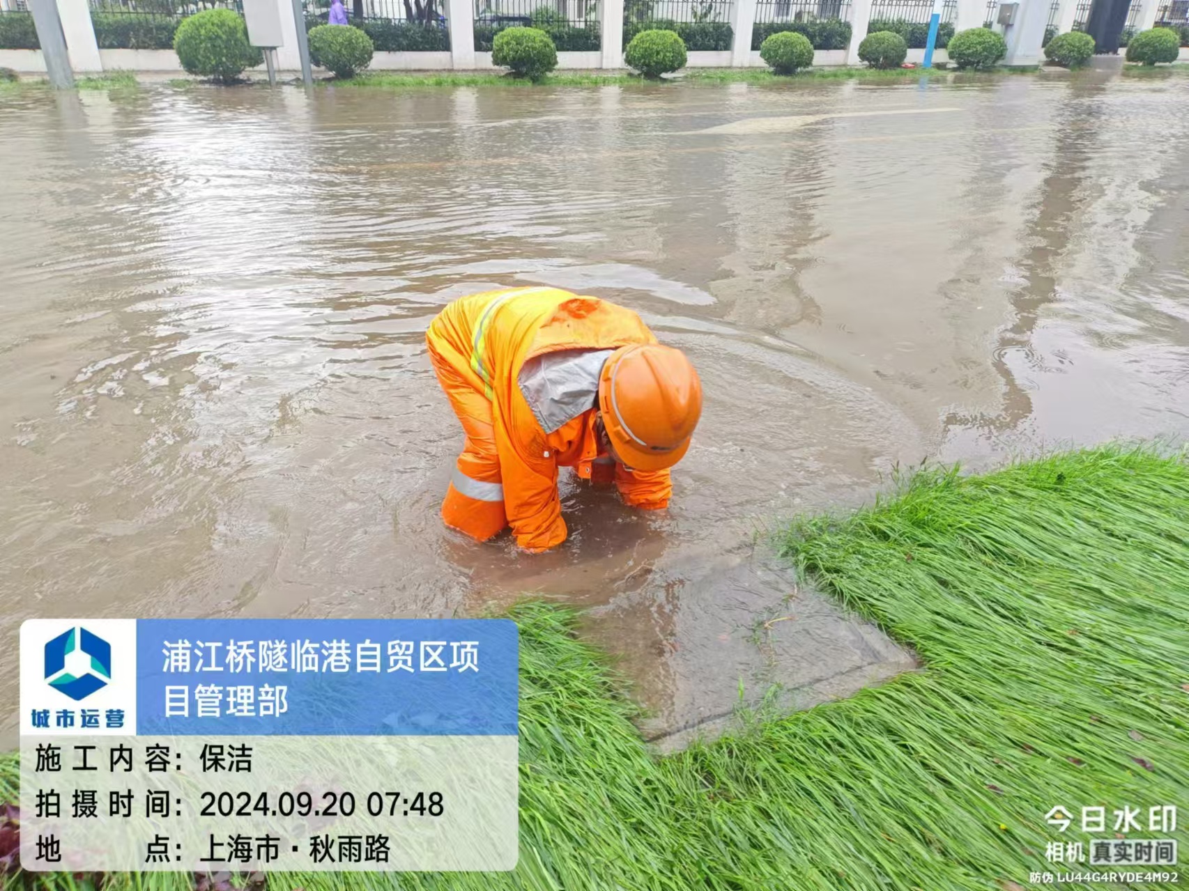 到5点30分,浦东新区听潮南路(沪南公路-汇成路)、迎熏路(大川公路~听潮南路)、大川公路(沪南公路-迎熏路)、南园路(沪南公路-迎薰路)、申腾路(汇技路向南260米)、在周邓公路(周达路口)等6条路面上,存水量超过15cm。全部位于雨水自排区,区域河流水位上升,发生倒流存水。相关维修单位共派出60人,4辆移动泵车和9台水泵进行抢险。周邓公路目前存水已经处理,其它点由于路面地形较低,受河流水位影响,仍在积极处理。