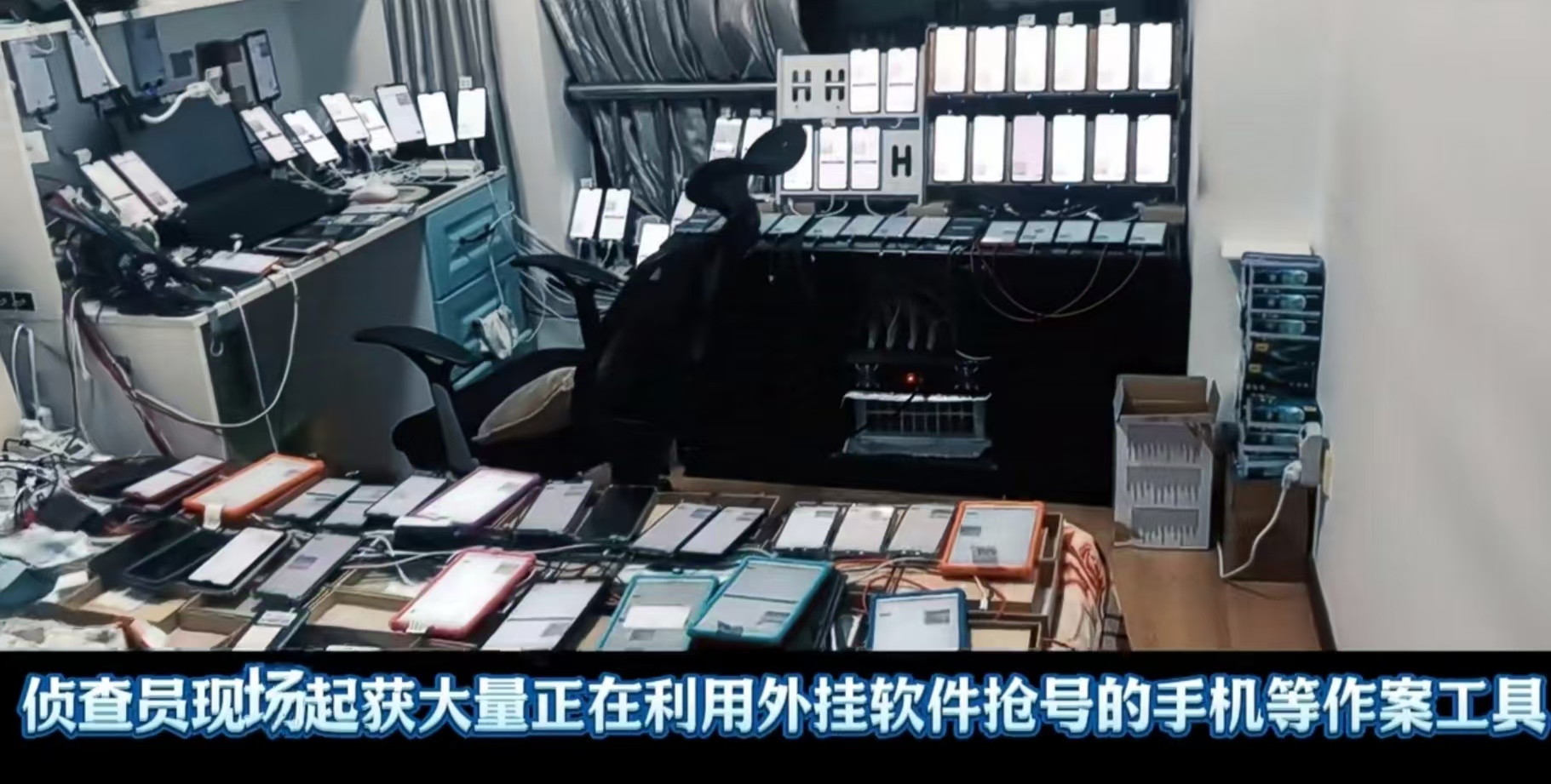 在网络接收行动中,调查人员在涉案人员家中获得了大量手机、平板电脑等犯罪工具。正在现场,这些手机屏幕不断刷新知名医院的注册页面,一秒钟可以点击近百次。抢号成功率远高于患者正常注册。