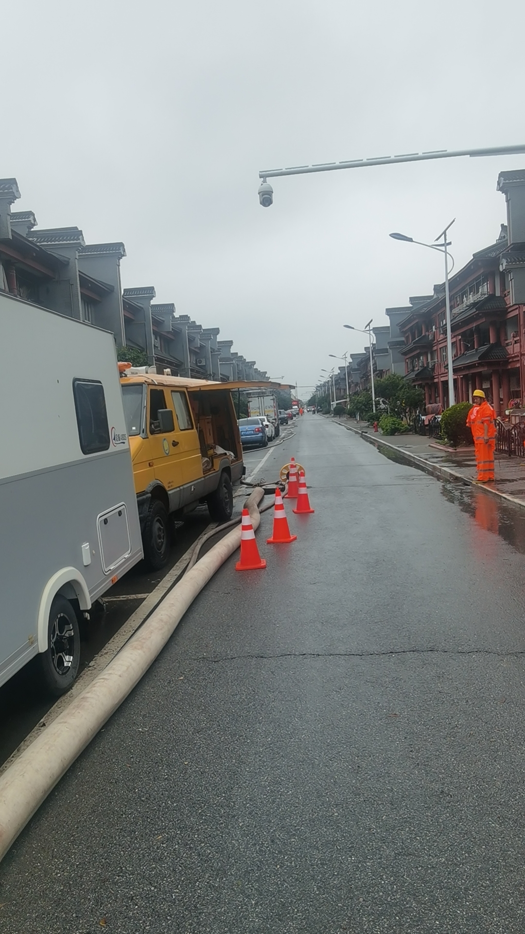 现在,崔爱国和突击队正在锦港佳苑一期周边排水。小区内路面存在大规模存水,影响居民出行,队员们正在尽最大努力排水。