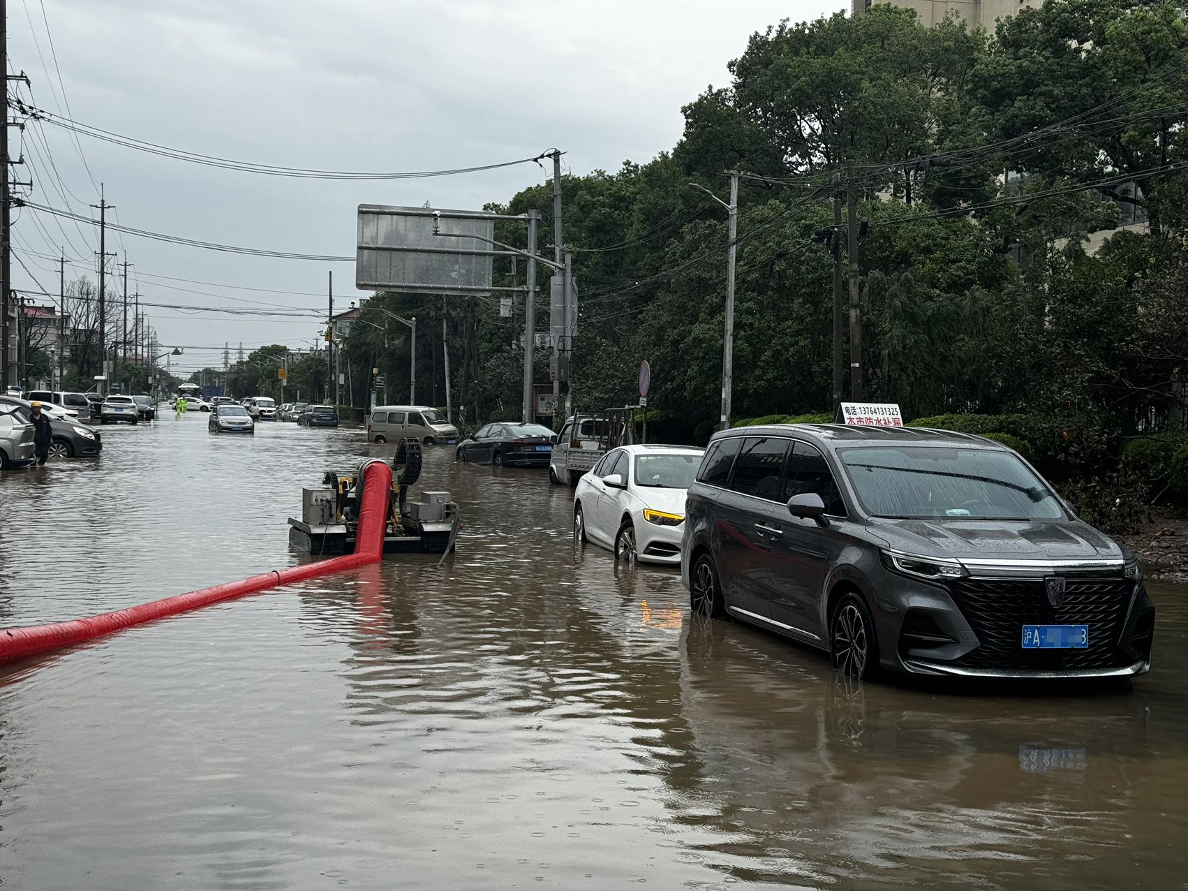 惠南镇上海浦东新区存水抢排:多辆车抛锚,存水已经减少。