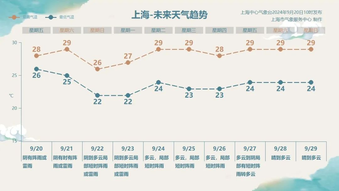 “普拉桑”向东移动后,冷空气将迅速向南移动,上海北风将在周六增加,雨水将再次升起。明天北风5级阵风6-7级,临江沿海城市6级阵风7-8级。主要是阴天,有时候会有阵雨或者雷雨,气温会下降。周末最高气温降至27℃左右,最低气温22℃。下周整体气温保持在30℃以下,迟早会凉爽。