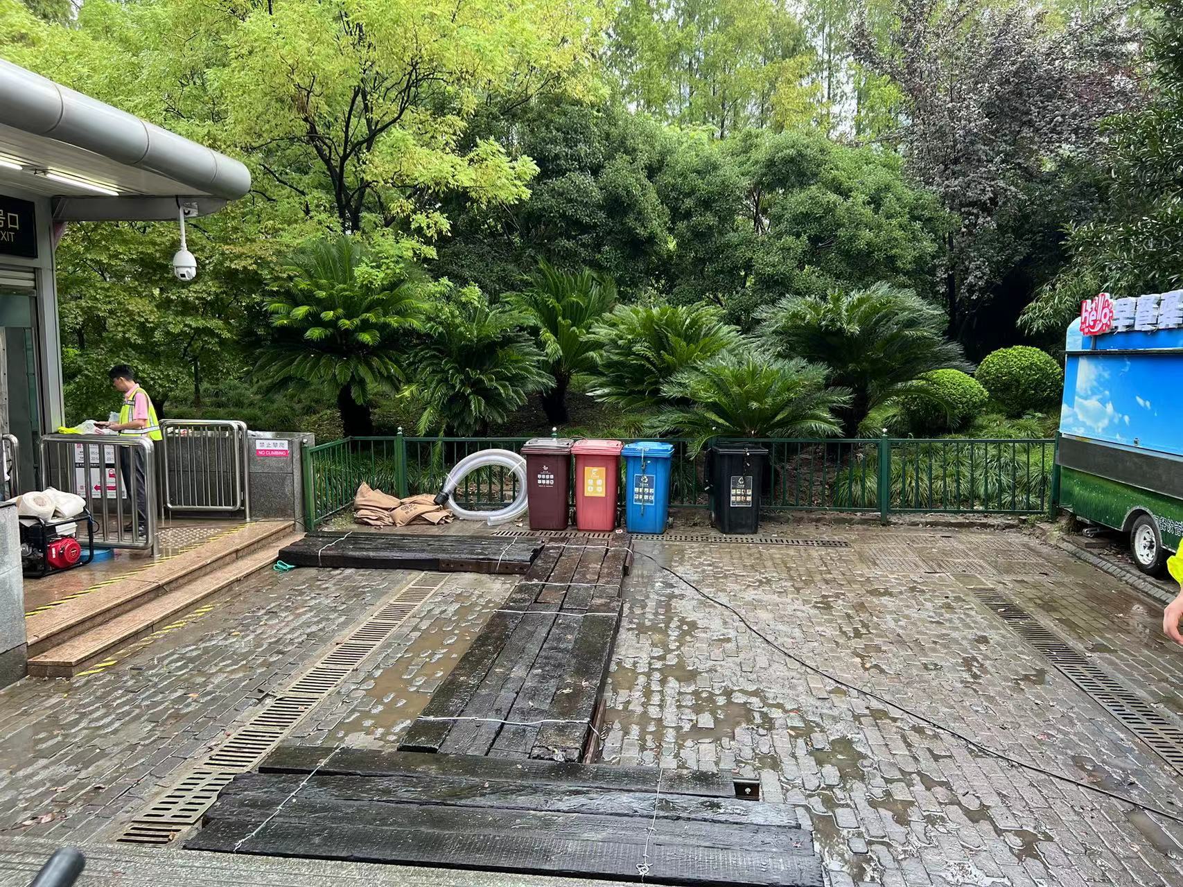 20日中午,上海地铁浦电路站外的存水已基本排出。上海地铁 供图