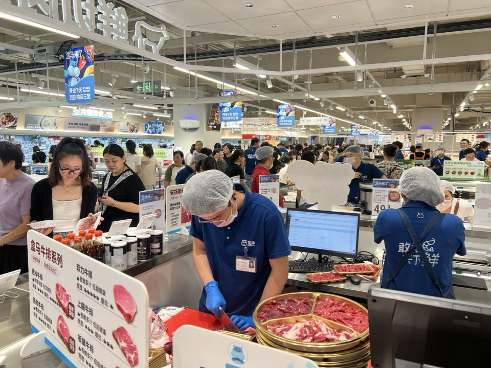 “从8月28日开始的线上试运营销售来看,猫山王榴莲千层蛋糕、瑞士卷等热门饮料,如盒马有机高钙4.0牛奶、草原奶酪酸奶、石榴云绿茶等,都位居前列。“盒马鲜生诸暨万风广场店经理杨涛说:“在线试运营期间,大家都倾向于在线名人产品,但来店里的市民更喜欢新鲜的牛羊肉,尤其是新鲜的牛羊肉。针对这一消费特点,新店重点扩大了鲜肉区域,还特意到潮汕请来了专门切牛肉的刀手。”