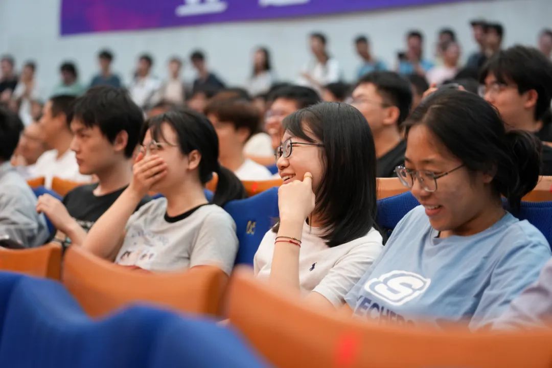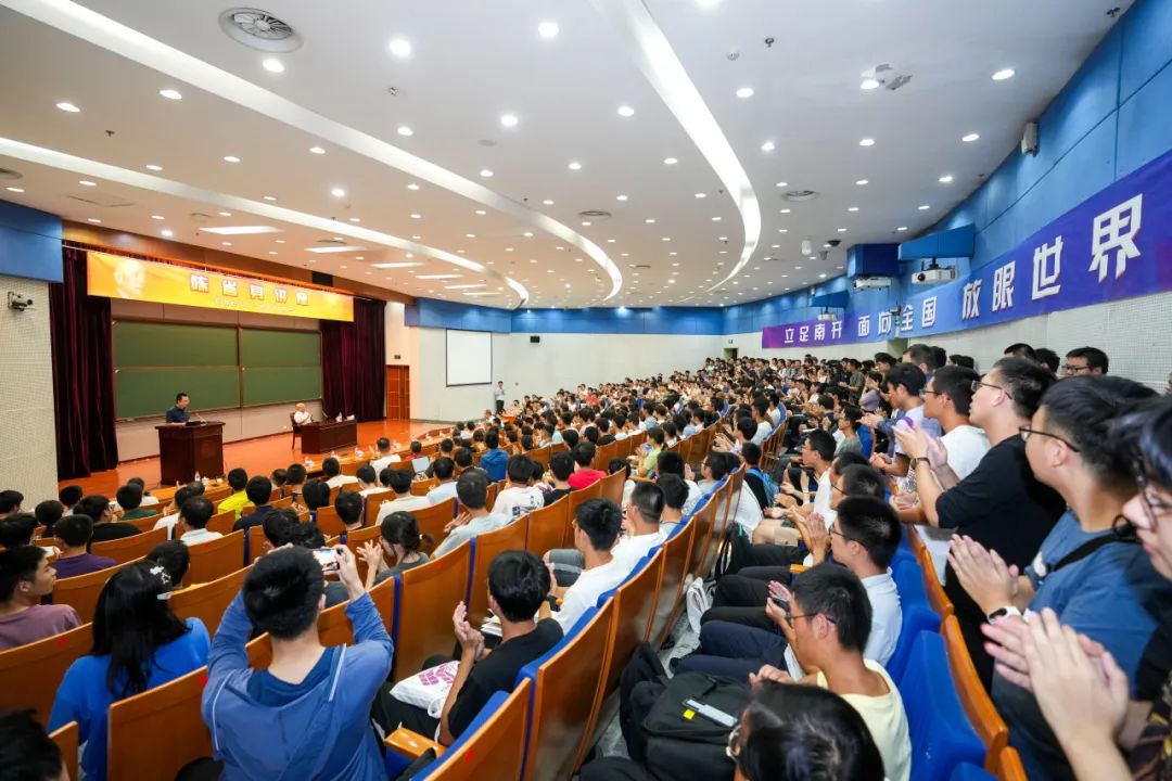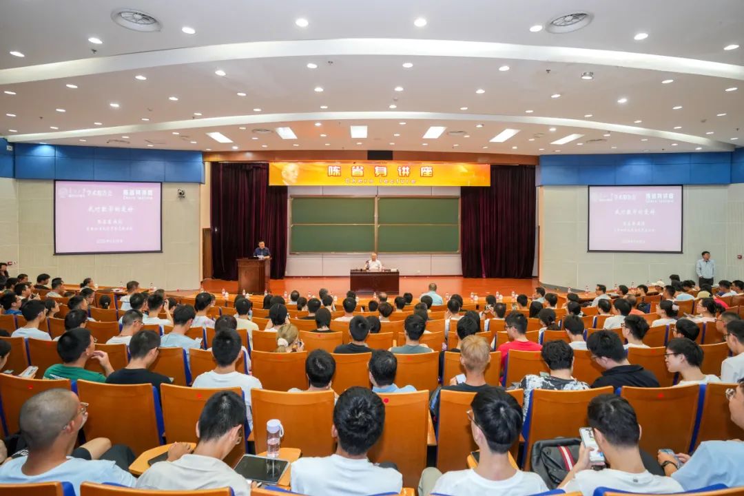 同一天,现场座无虚席。报告开始前一个小时,省级建筑的报告厅已经人头攒动。过道两侧挤满了听报告的学生,甚至临时增加了三个现场广播教室。张益唐以自己对数学的热爱为主题,向南开师生深情地讲述了自己多年来与数学相伴的岁月。
