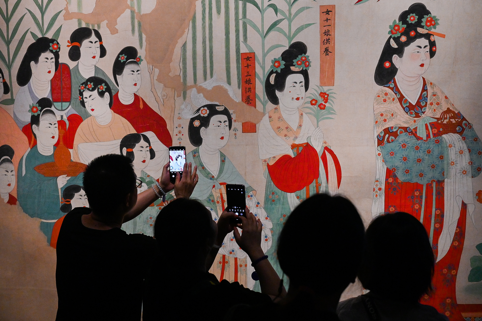 上海,中华艺术宫,2024年9月20日,游客们正在拍摄《都督夫人礼佛图》。本报记者 朱伟辉 图