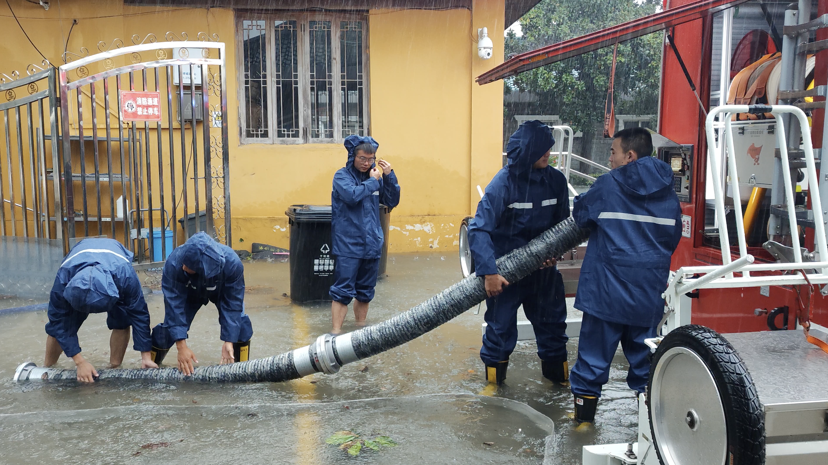 “每年台风天,情况都差不多。我们在早期制定了处置计划。这一天,每个人都很活跃,老人也来给我们送水和食物。”王永超讲完后,继续抽水。