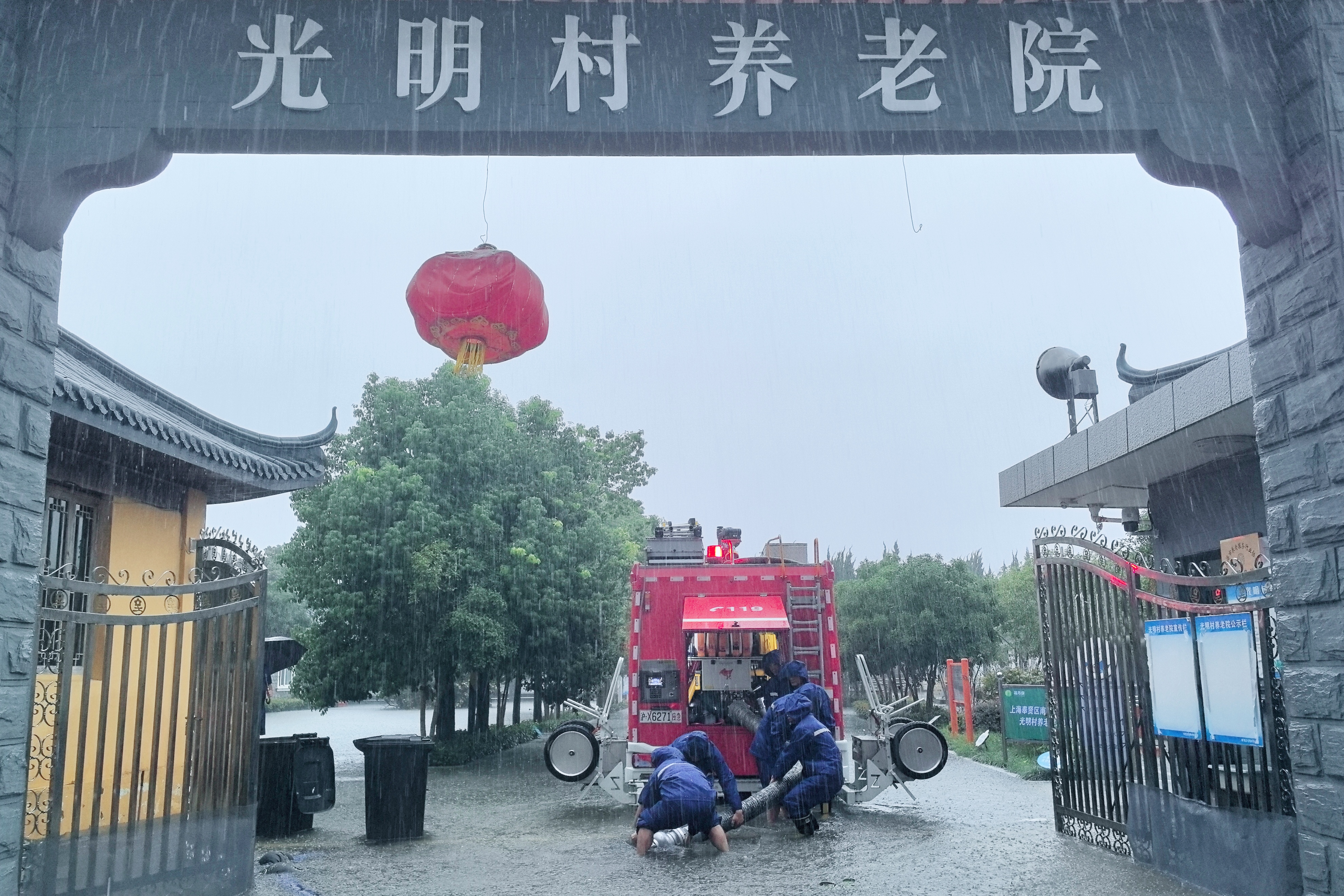 不到4点30分,江海消防救援站在奉贤区金苹果养老院接到报警求助,称医院积水严重,水位迅速上升。消防队员王永超和他的队友迅速赶到现场。黎明前,他们在黑暗中抽水。经过两个多小时的处理,他们周围的微型消防站被派去接力和交替。