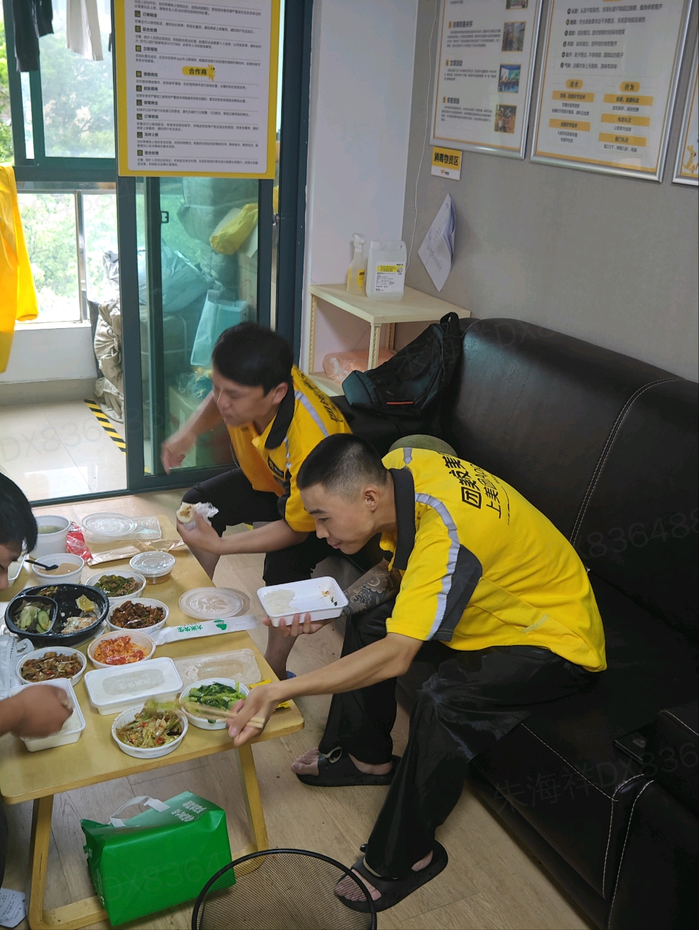 前排男士为被传为猝死的外卖骑手。 平台供图