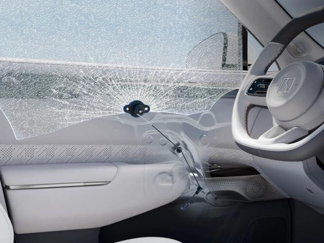 另外还有这种一键式破窗的功能,如果遇到不小心冲进水中的情况,只需拉一下门内的拉锁,就可以瞬间将窗户打碎。