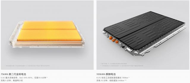 根据配置的不同,动力分为单双电机和大小电池组的不同版本,前后电机的功率分别是 165 kW 和 310 kW ,只有那一个后驱 310 kW 电动机,组合 75 金砖电池或度数 100 程度麒麟电池,续航可以到达 605 公里和 780 公里。