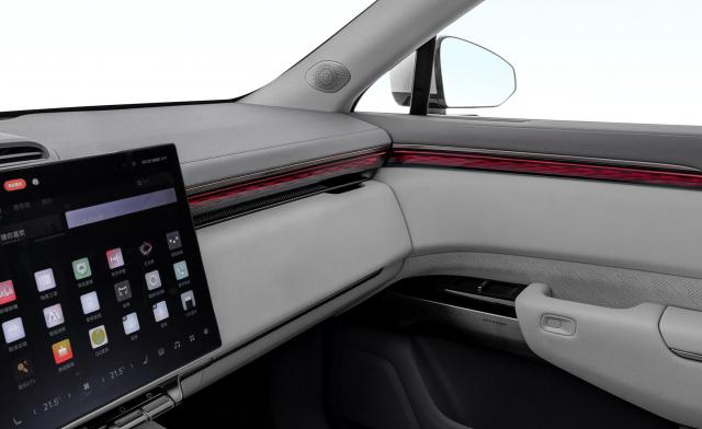 再加上副驾驶前面这种皮革。 金属饰条穿插的层次感,明明看起来有些拥堵,可以到处都是收纳空间的设计。( 扶手上的小槽可以正好放下一部手机 ), 7X 车内看起来的确一点也不像新能源,反而扑面而来的是一股强烈的油车味。