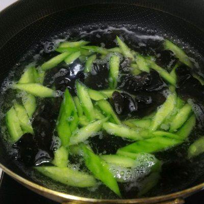 5、木耳泡好后焯水两分钟。