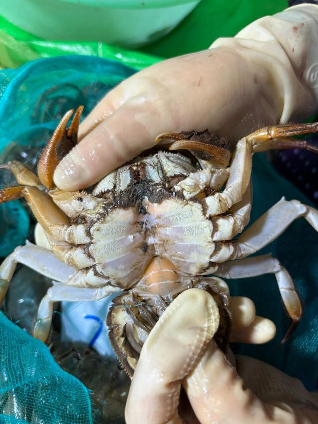 记者来到人乐市场,看到一些摊主已经把大闸蟹放在了显眼的位置,一只大闸蟹咧着嘴笑,充满了活力。价格方面,因为大闸蟹刚上市,目前价格略高。“两个一般。” 20 一元,二二六卖 28 到 30 元,三两是 35 元素,基本都是母蟹。”摊主说。