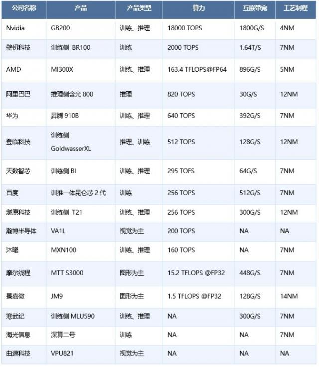 图表 3:国内外 AI 芯片制造商、产品和技术特点