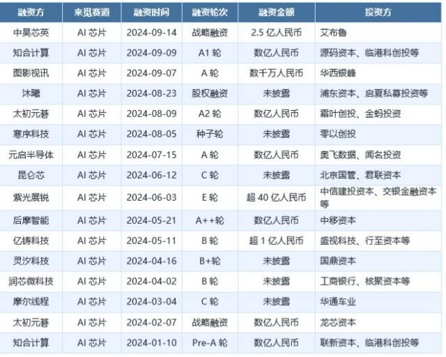 图表 4:2024 年至今 AI 主要的芯片投融事件