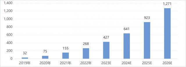图表 2:2019-2026E 中国智能算率的规模和预测(单位:亿元)