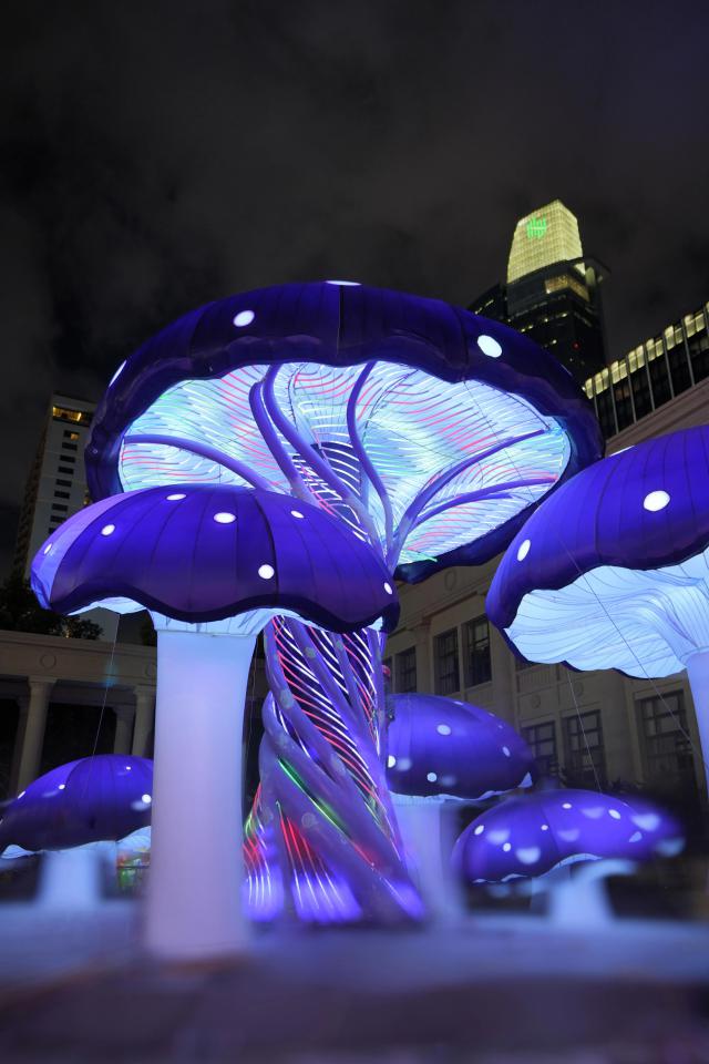 这次上海国际光影节的“蘑菇丛林”是 2025 2008年豫园灯会主题大灯的一部分,内容的设计灵感来源于《山海经》中关于“菌人”的记载。在《山海经》中,“菌人”是指反派国家的人。他们小如真菌。虽然他们微不足道,但他们有一个快乐而平静的性格。