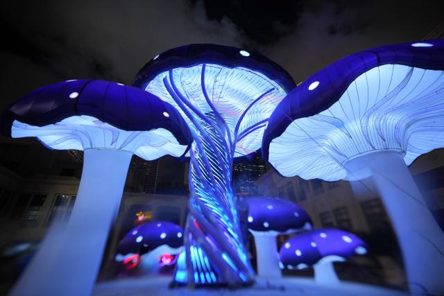 2025年豫园灯会7米高前灯“蘑菇丛林”提前亮相