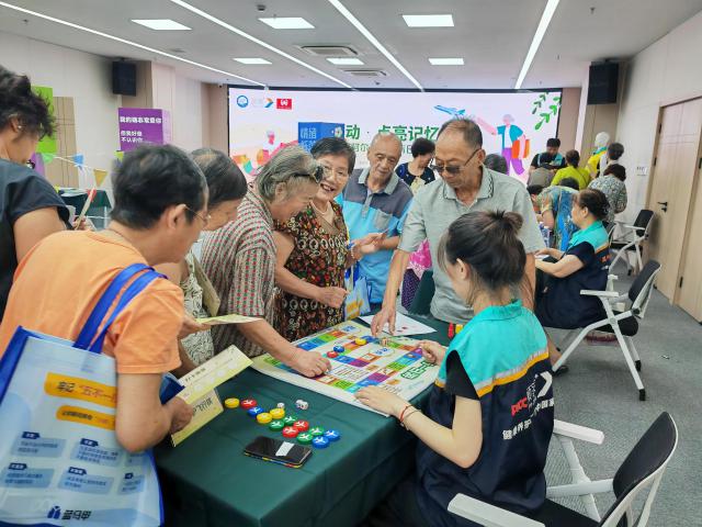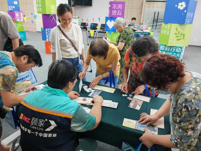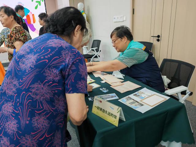 在现场,具有南京东路街道特色的认知障碍干预道具——“一封来自古老的信”受到了居民的欢迎。在完成旧照片拼图的过程中,居民们似乎回到了过去,感受到了岁月的温度。“南东航行一日游”的飞行棋游戏,让居民在轻松愉快的氛围中进一步认识到健康生活的重要性,获得更多的健康知识。