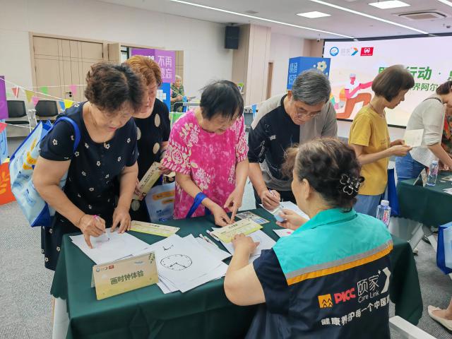 本次活动采用多种形式普及阿尔茨海默病的相关知识。在认知障碍科普展区,居民详细了解了疾病的病因、发展过程及其对患者的影响,以及早期预防、早期干预和早期治疗的重要性,通过掌握阿尔茨海默病十大早期症状,进一步提高警惕,及时发现异常。经过初步的认知障碍风险评估画钟测试,居民们也对自己的认知功能有了初步的了解。