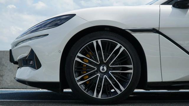 首先看一下基本参数,腾势。 Z9GT 车身尺寸为 5195 × 1990 × 轴距为1480mm, 3125mm。车身结构为猎装车造型,侧面线条纤细优雅。